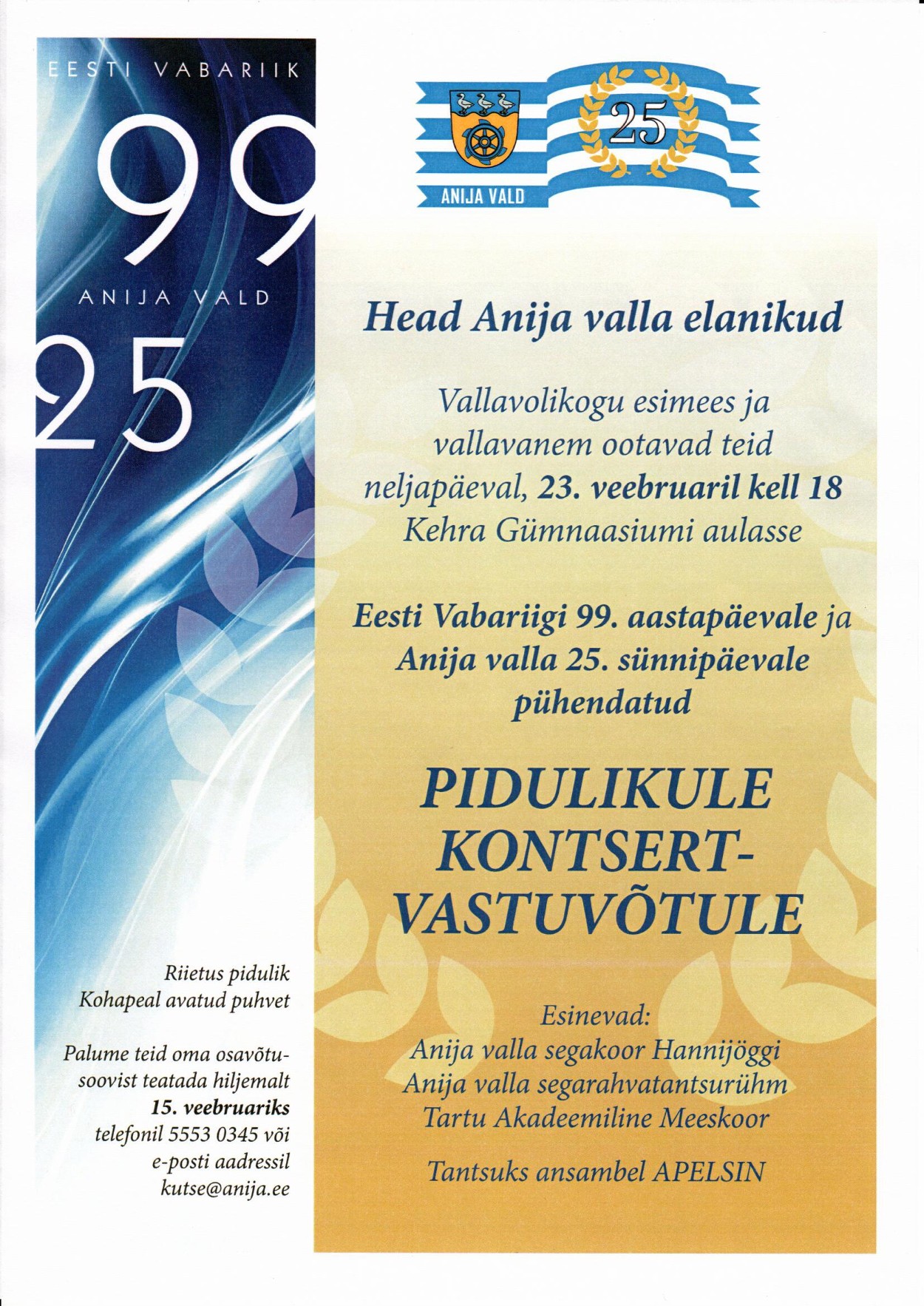 Eesti Vabariigi 99. aastapäeva ja Anija valla 25. sünnipäeva kontsert-vastuvõtt 23.veebruar 2017Külli Kroon7. March 2017Kroonika Kontsert-vastuvõtu video Pildid Anija valla FB lehelt: