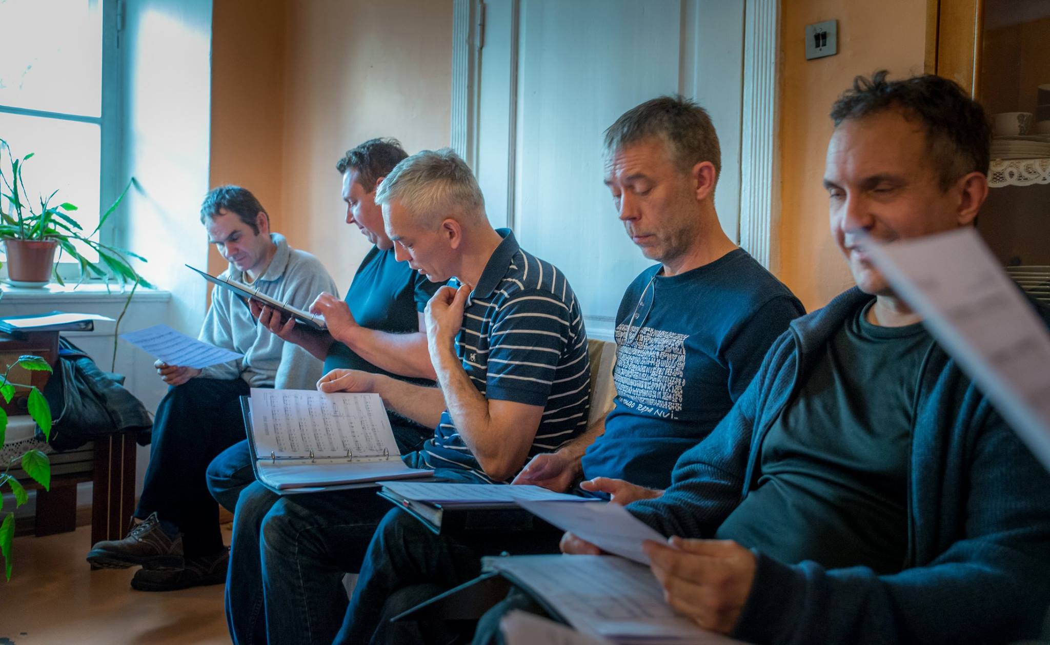 Et uute laulude õppimine sujuks, laulsid mehed oma partiisid Heli juhendamisel eraldi.