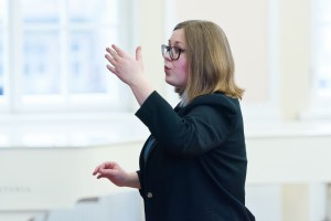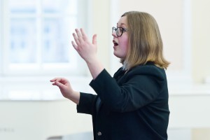 KRONOLOOGILINE INFO: Öö möödus mõnelgi lauljal vähese unega, sest kerge ärevus ja läbi une sõnade kordamine tegid oma töö. See on täiesti mõistetav, sest meie noor koor osales sellisel võistulaulmisel esimest korda. Startisime hommikul kell 9. Tartusse jõudsime poole tundi arvatust varem. Miina Härma gümnaasiumihoone on väga põneva arhitektuurse lahendusega, meile broneeritud klassi leidmine ei olnud siiski kuigi raske. Dirigent Eleri-Kristel alustas häälte lahtilaulmisega. Kerge ärevus püsis. Kell 13.20 oli meie 10 minutiline lavaproov. Oli meeldiv, et kooli saalis on nii hea akustika. Laulud kõlasid kindlalt. Järgnes taas häälte lahtilaulmine klassis. Riietusime ja meie etteaste oli kell 14.26. Mariell luges meile sõnad peale, et me lava taga ei lobiseks. See oli parim nõuanne, just sel viimasel hetkel ennem lavale astumist oli hea peas läbi mõelda võimalikud nõrgad kohad ja end emotsionaalselt valmis seada selleks etteasteks. (Kuna püsisime lava taga vaiksed, saime selle eest ka saalisolijatelt kiita).